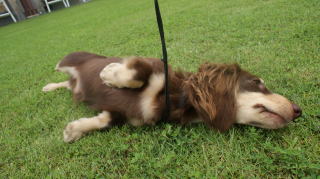 ![]() イブの同腹姉妹・ベル うちで一番の踊り手?? ご覧になりたい方は当犬舎までお越しください。 妖艶なダンスをご披露いたします! |
