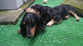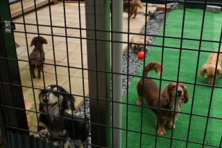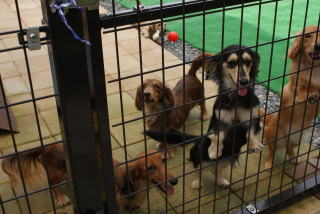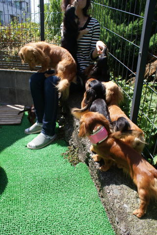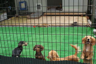 ![]() 日中は犬舎と庭で運動です |